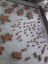 Baking time is until, they are pretty stiff and hard, I have had mine in for over an hour now and still waiting, as they should not feel too cakey in the middle. Don’t get them too dark, either, as that will make them brittle. The pieces for the house have to be sturdy. The smaller pieces will have to be watched more carefully for darkness around the edges.