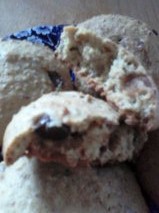 For good healthy measure, I add 1/4 cup flax seed, 1/8 wheat germ, 1/8 cup wheat and bran and…1 cup chocolate chips. Your mixture should be stiff, like choc. chip cookie dough, if needed add another tablespoon of water or milk. A handful of nuts and raisins is good, too.
